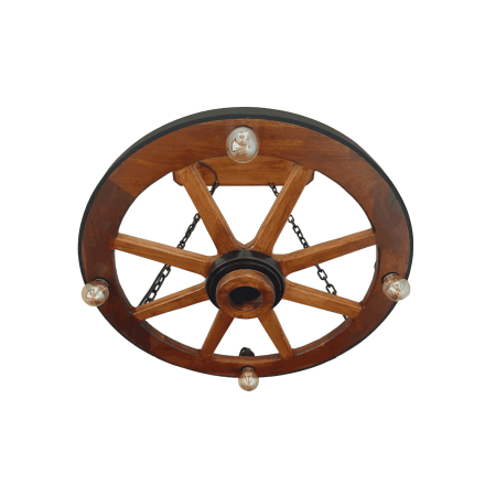 • Lustre Rústico Roda de Carroça 60cm Madeira Maciça 4 Lâmpadas Bivolt Teto Retro Antunes ( não acompanha lampadas )