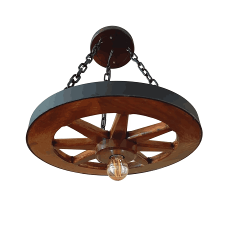 • Luminária Pendente Rústica Roda de Carroça 35cm Madeira Maciça E27 – Antunes ( não acompanha lampada )