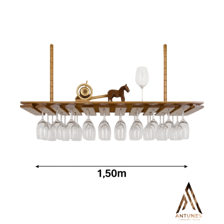 • Suporte de Taças Suspenso 1,50m em Madeira Maciça – Rústico, Artesanal e Elegante ( 36 Taças )