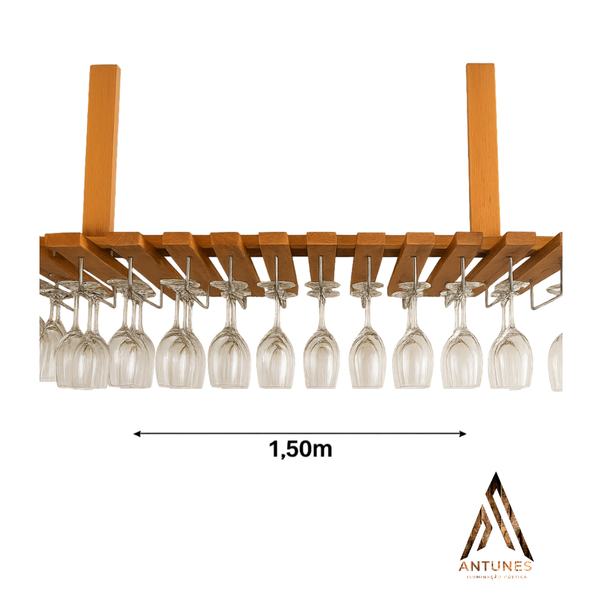Suporte de Taças Suspenso em Madeira Maciça 1,50m – Antunes Móveis Rústico