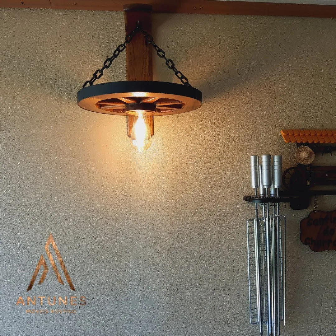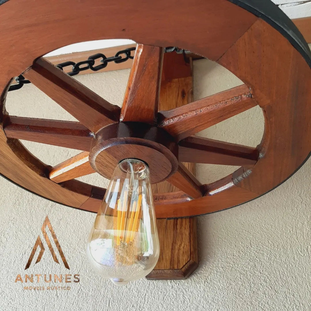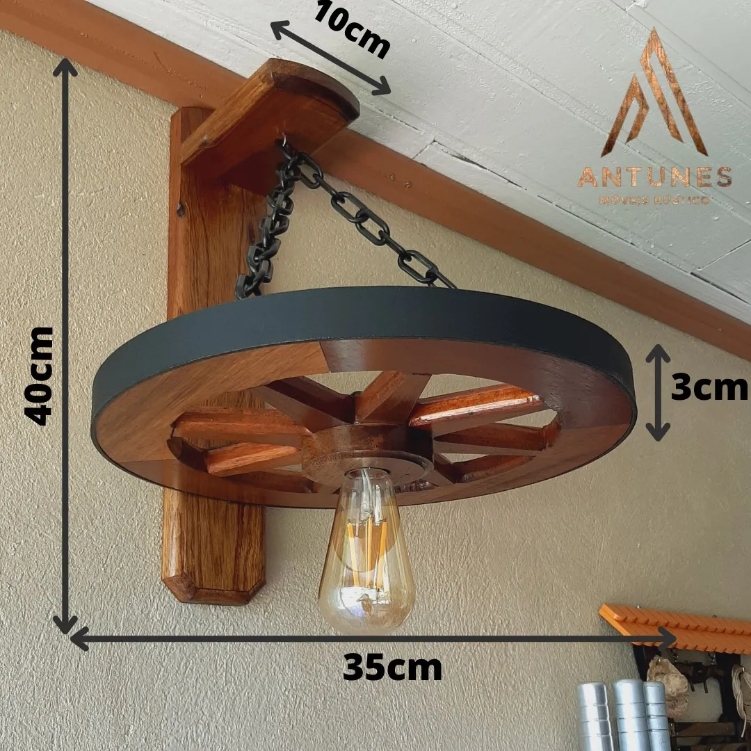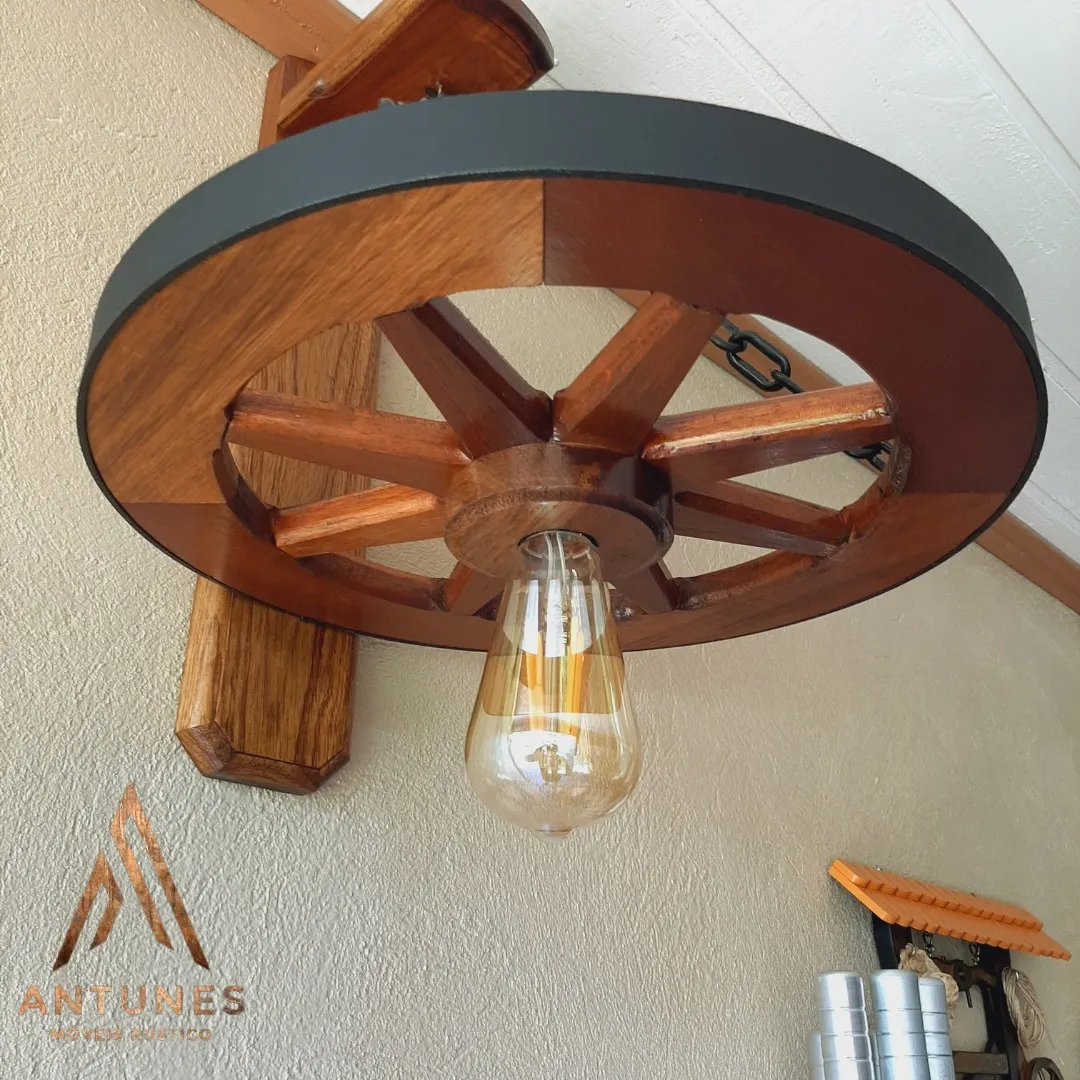 🔥 Arandela Luminária Rústica Roda de Carroça Madeira Maciça | Antunesmoveisrustico – Artesanal, Bivolt
