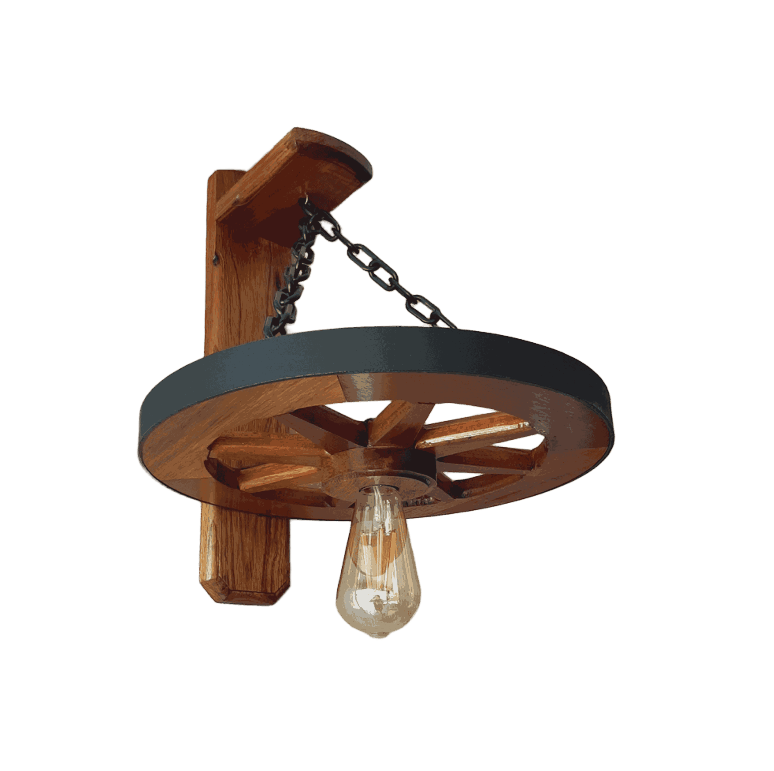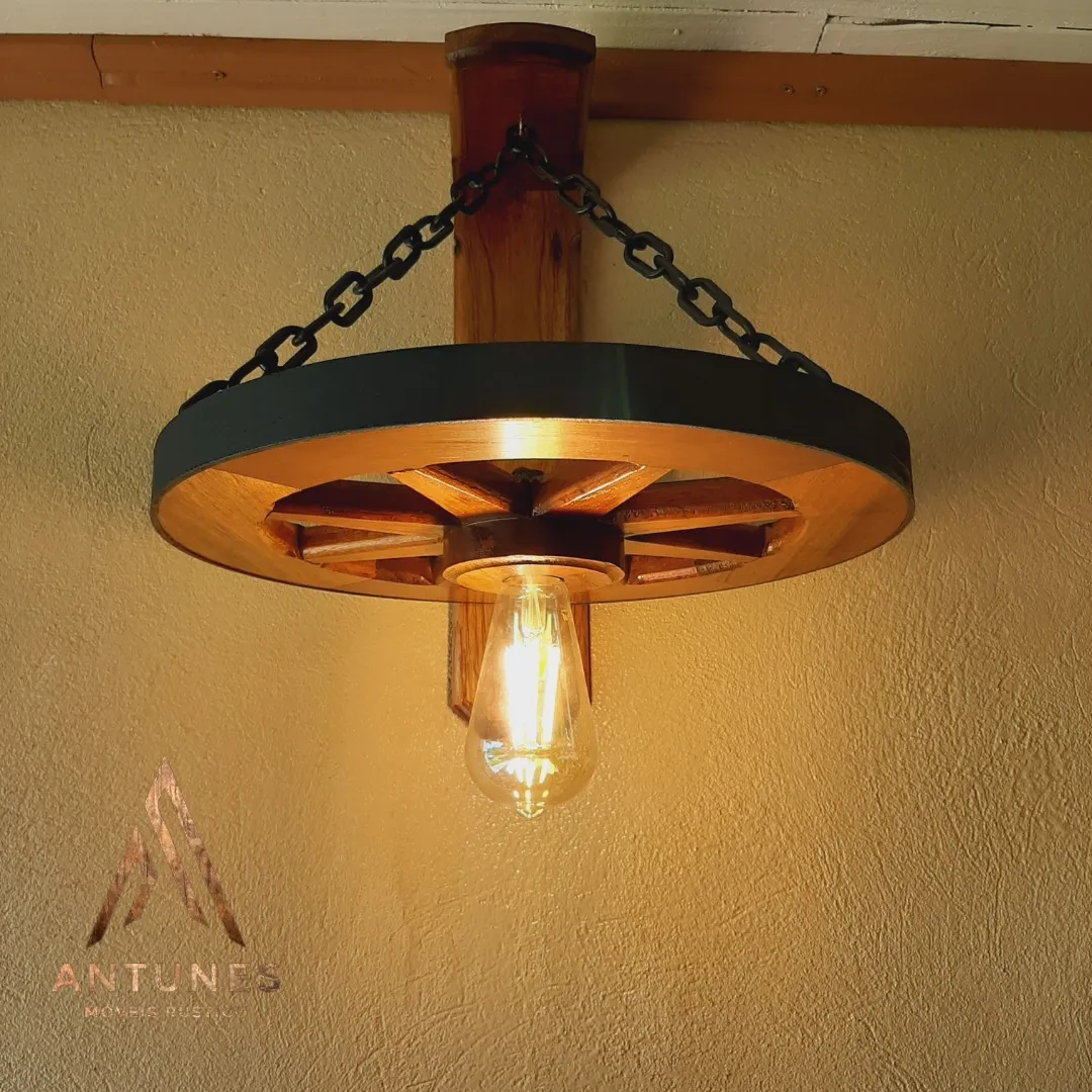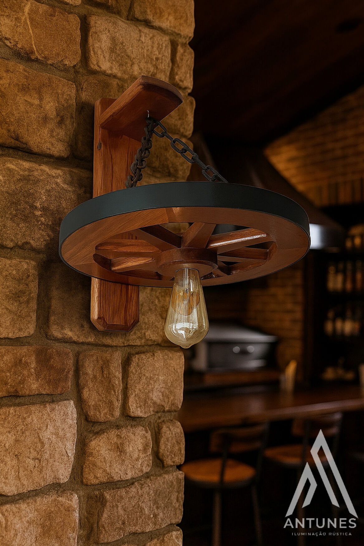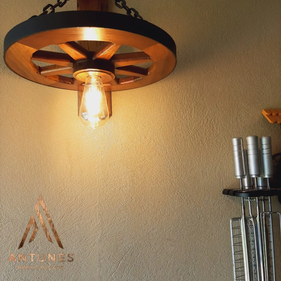 🔥 Arandela Luminária Rústica Roda de Carroça Madeira Maciça | Antunesmoveisrustico – Artesanal, Bivolt