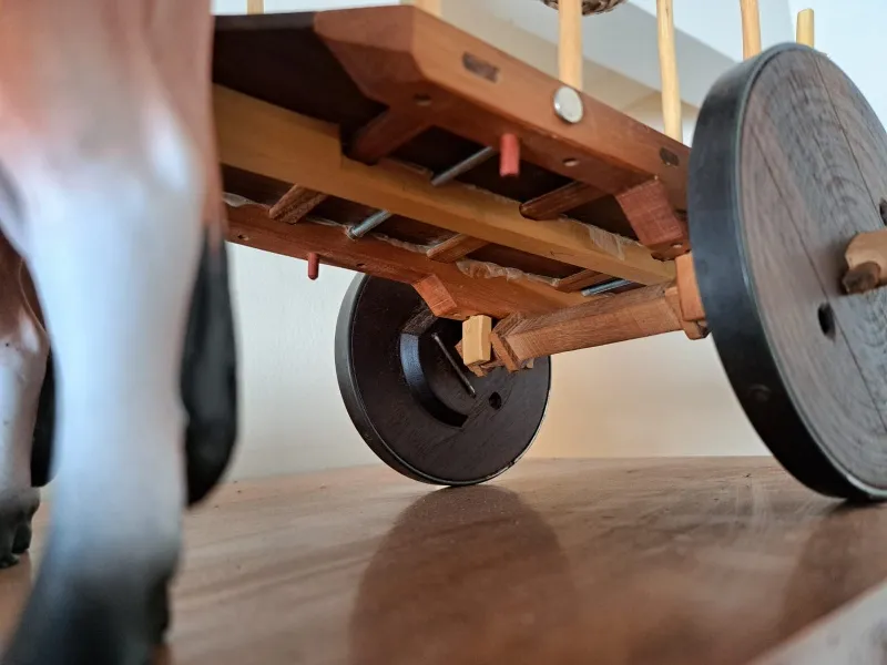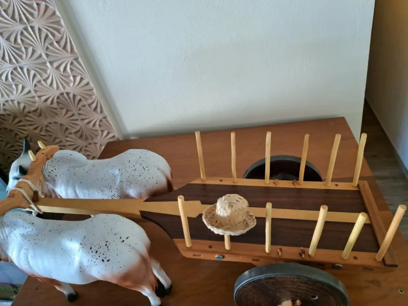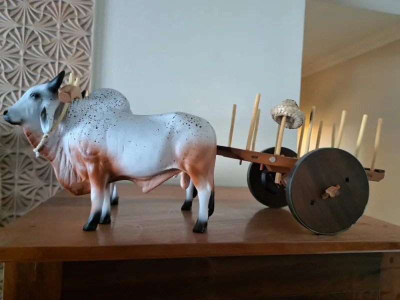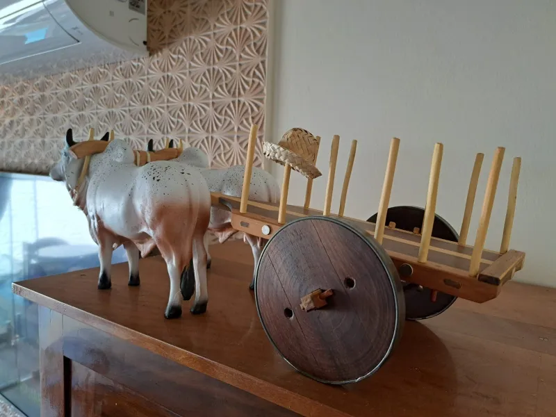 O carro de boi é um símbolo do interior brasileiro, usado por séculos no transporte de cargas e pessoas nas zonas rurais. Essa miniatura homenageia essa tradição de forma realista e artesanal, resgatando a beleza da simplicidade e do campo.